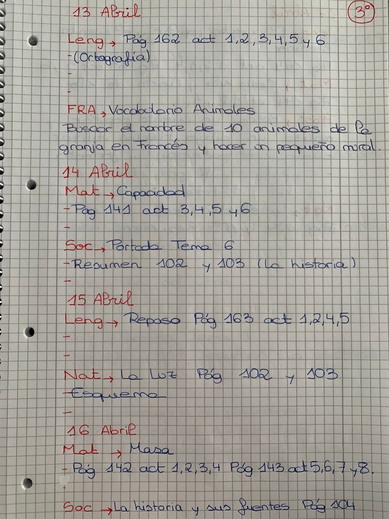Os dejo aquí el trabajo para esta semana, ya sabéis que debéis entregarlo diariamente.