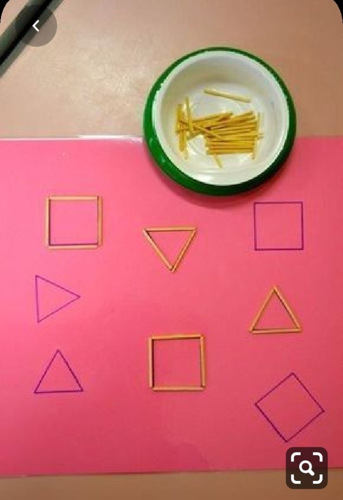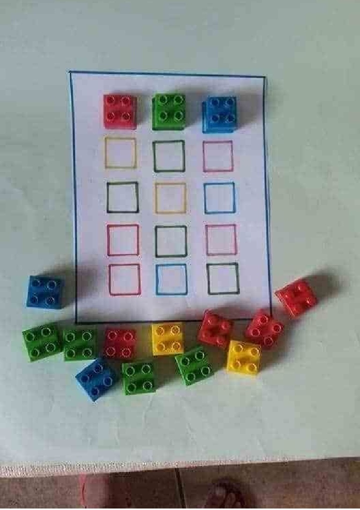 Hagamos formas geométricas con trocitos de espaguetis Tenemos piezas de Lego o bloques de colores?? Pues hacemos una sencilla plantilla de colores para fijarnos bien y colocar cada uno en su color.Con un barreño de agua, tapones o algo que flote y una cuchara grande, vamos a jugar a la pesca!!! Qué no se escape ninguno!!!
